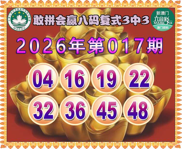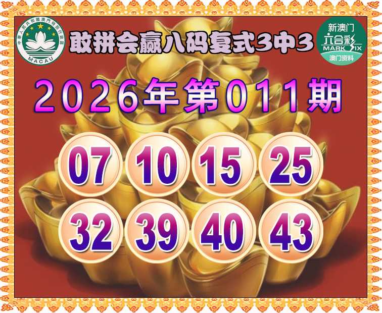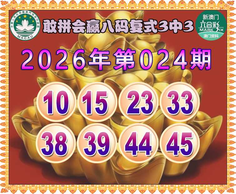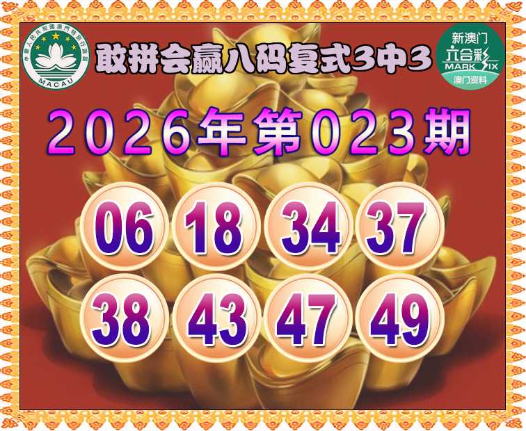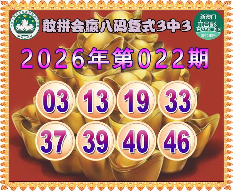 026期:《敢拼会赢》 🏇八码复式3中3🏇