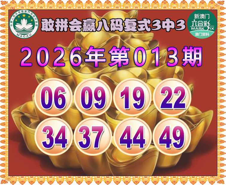 013期:《敢拼会赢》 🏇八码复式3中3🏇