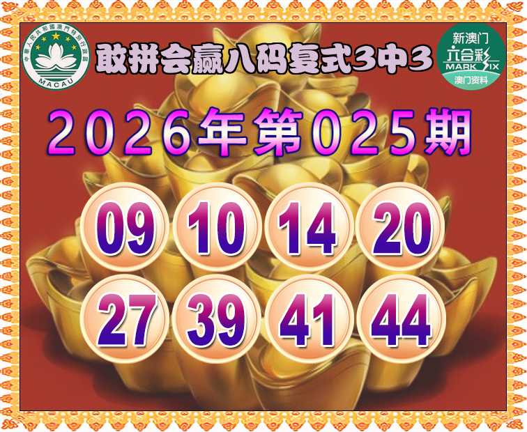 025期:《敢拼会赢》 🏇八码复式3中3🏇