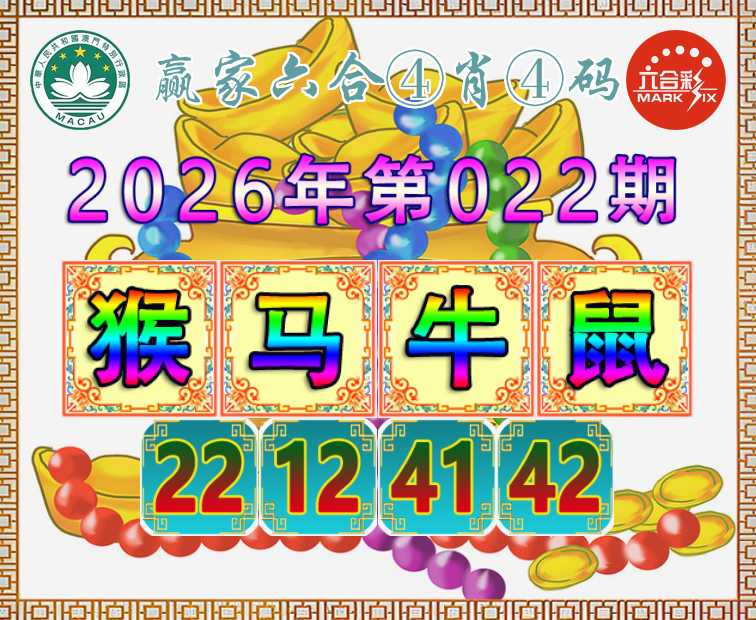 022期:【赢家六合】 🌸④肖④码🌸【猴马牛鼠】【22.12.41.42】开:鼠18准