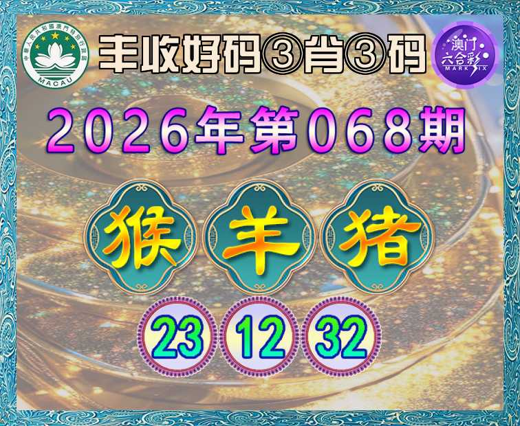 068期: ☘️『丰收好码』 ☘️③肖③码☘️【猴羊猪】【23.12.32】开:猴23准