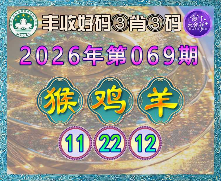 069期: ☘️『丰收好码』 ☘️③肖③码☘️【猴鸡羊】【11.22.12】开:羊24准